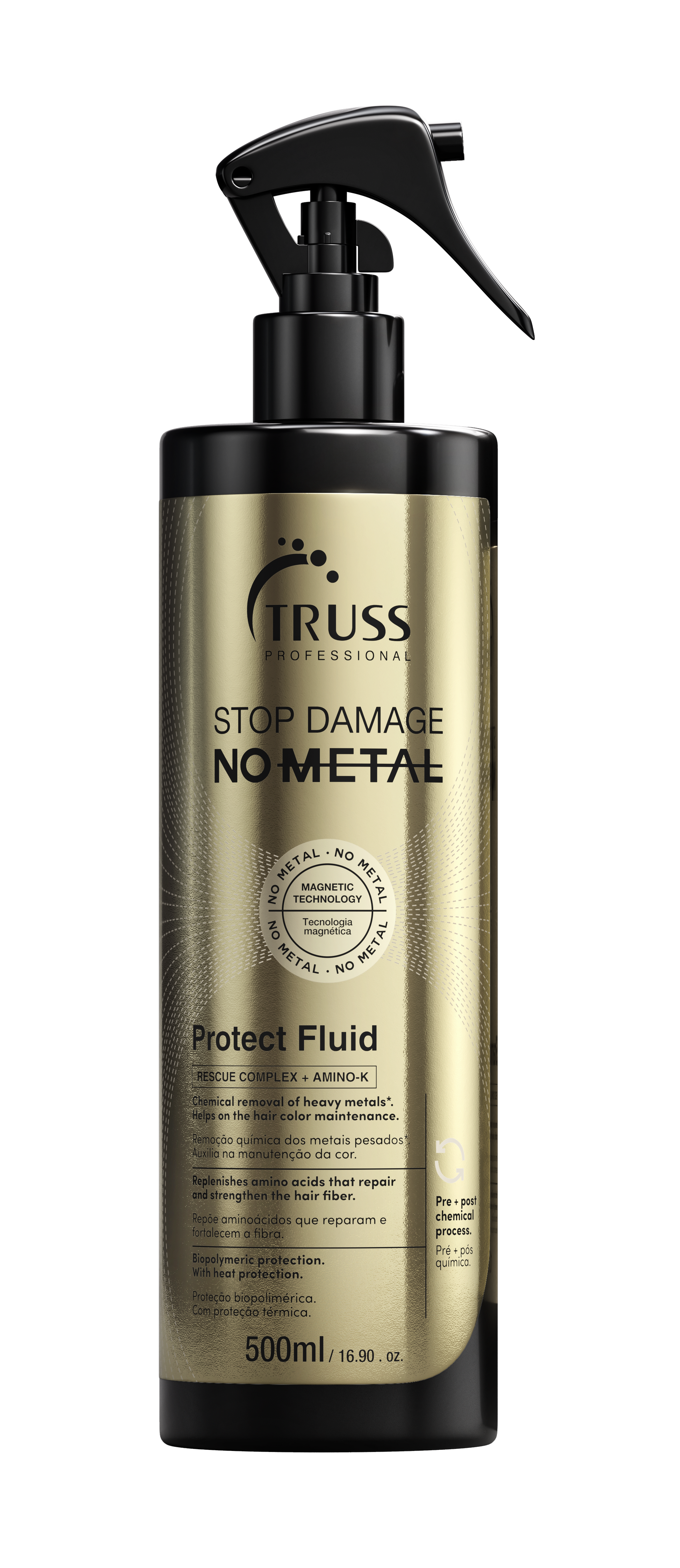 El Fluido Protector TRUSS Stop Damage No Metal (500 ml) es un tratamiento de calidad profesional diseñado para proteger el cabello del daño causado por los procesos químicos. Su fórmula avanzada elimina metales pesados como el cobre y el plomo, que pueden interferir con la coloración y otros tratamientos. Al equilibrar el pH y sellar las cutículas, garantiza resultados óptimos y mantiene la salud capilar. Ideal para usar antes de la coloración o la decoloración, este fluido mejora la absorción y la duración del color, a la vez que previene la rotura y la sequedad. Disfruta de un cabello más suave y resistente con mayor brillo y manejabilidad.